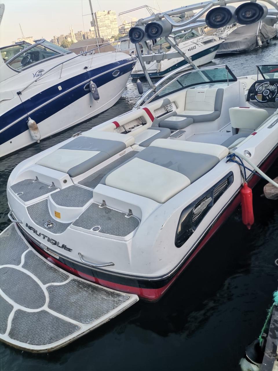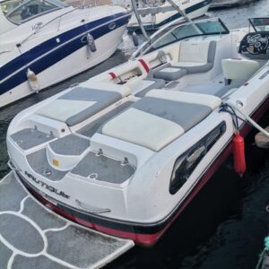 The 2008 Nautique 230 Team Edition is a well-maintained wake boat with newly refurbished upholstery and a sleek fresh body coat. It boasts an upgraded tower and an enhanced deck sound system with a subwoofer, providing an unbeatable audio experience on the water. Equipped with Zero Off cruise control, it offers precise speed regulation, perfect for wakeboarding and watersports. The Hydro Gate allows for easy adjustment of the wake shape, giving riders optimal performance. A new propeller ensures smooth and efficient rides. This boat is ready to deliver premium comfort, style, and performance for all your water adventures.